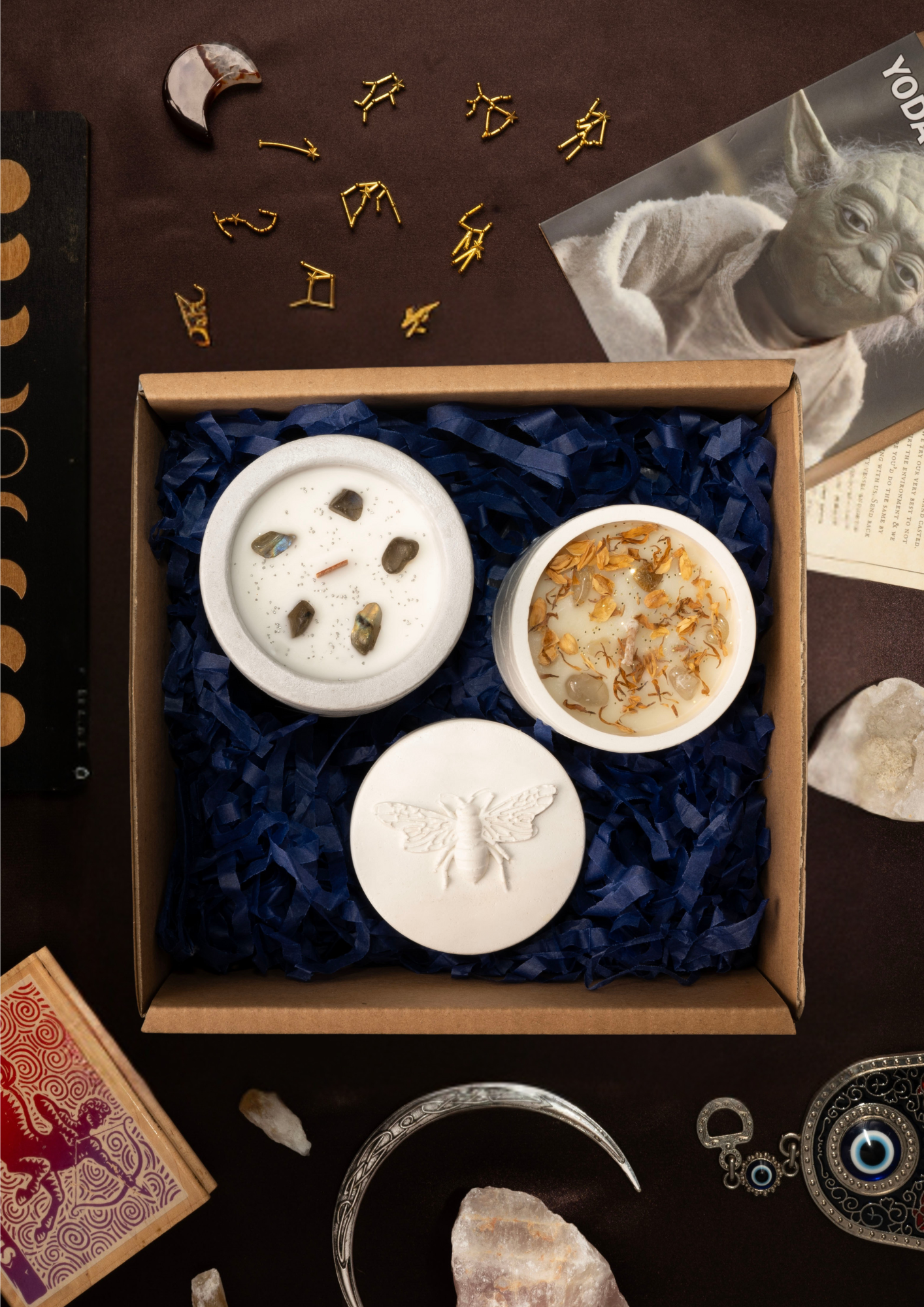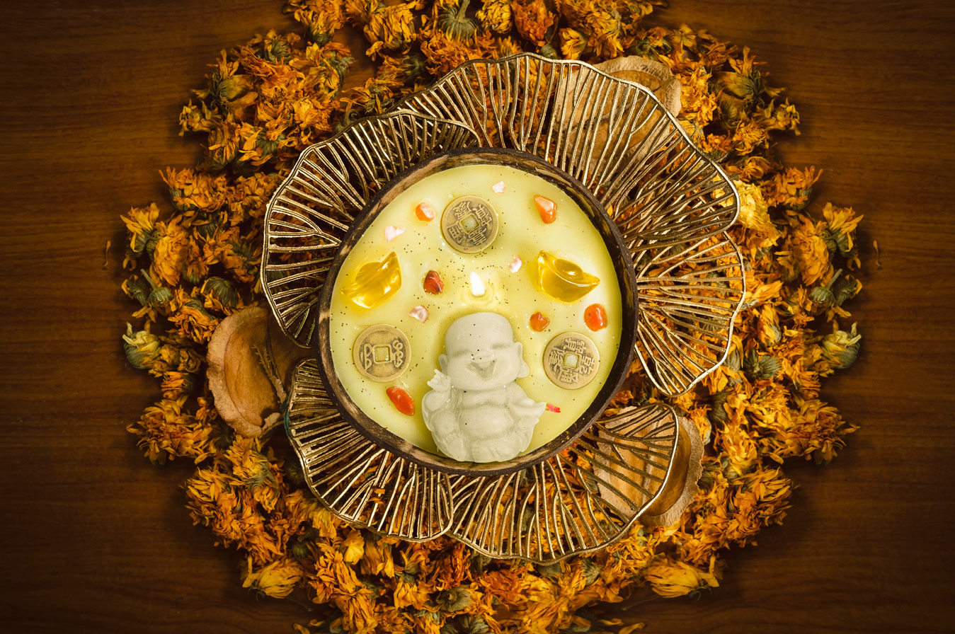 Designed to ease the mind and expand the imagination by combining the sturdy and prosperous coconut with dreamy, exciting aromas and mythic, fantastical materials.