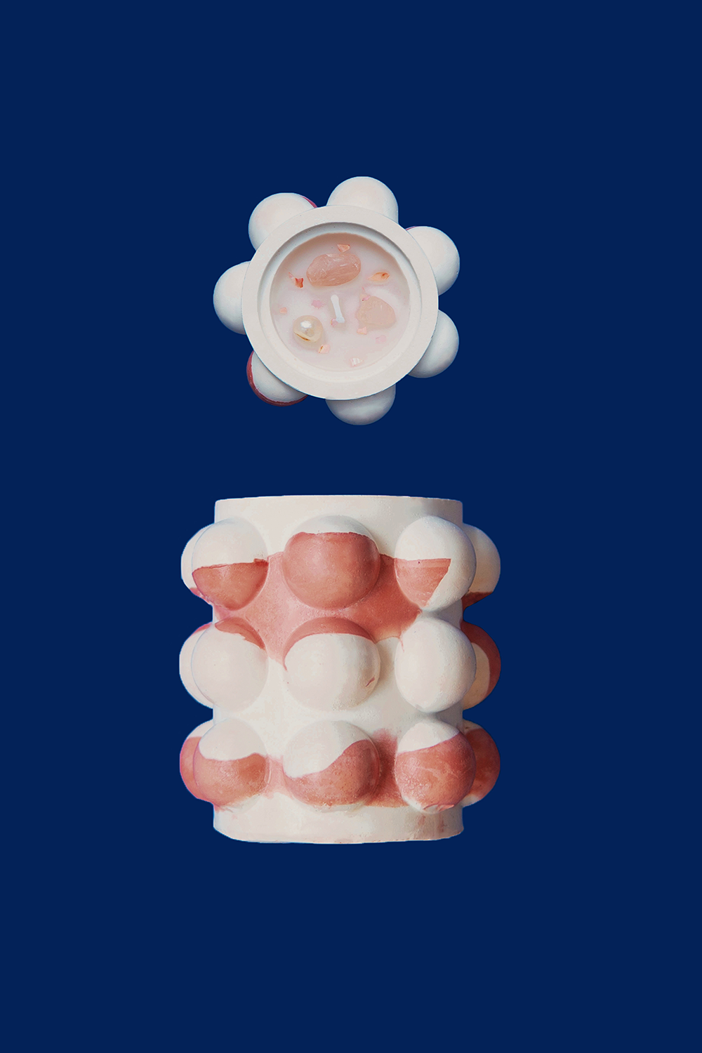 2. This candle features artistic wax shapes that will slowly melt when the candle burns. This is normal and to be expected.